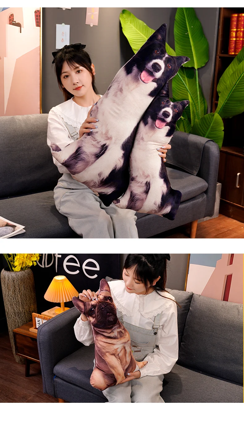 3D Simulation Dog Plush Toys Stuffed Pillow Lifelike Shiba Inu Corgi Bulldog Sofa Bedroom Cushion Home Decor Boys Birthday Gifts