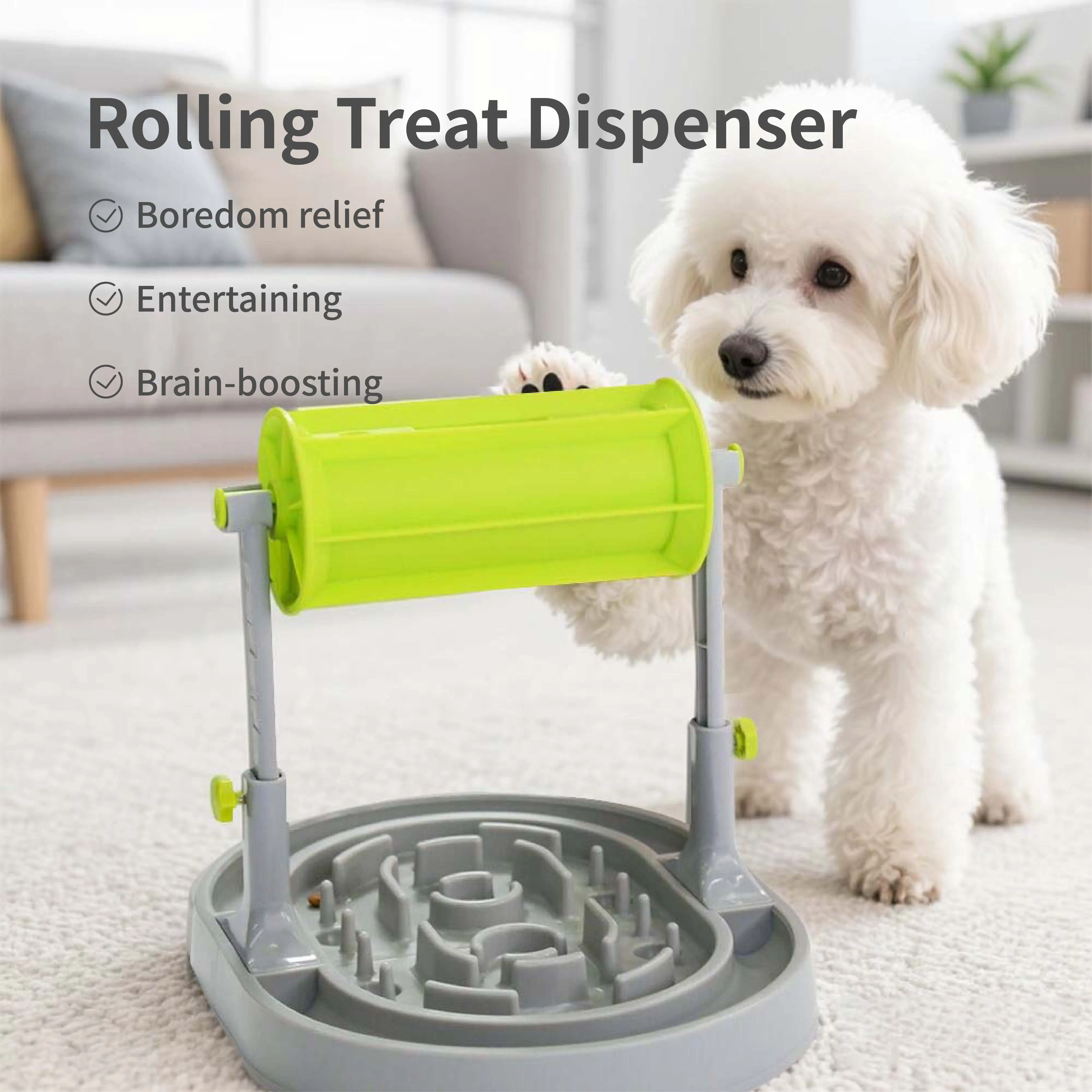 Adjustable Height Pet Feeder Rolling Slow Feeder Anti-Choking Interactive Intelligence Enhancer for Cats and Dogs Food Dispenser