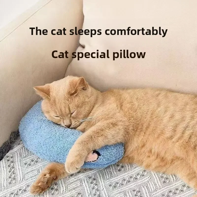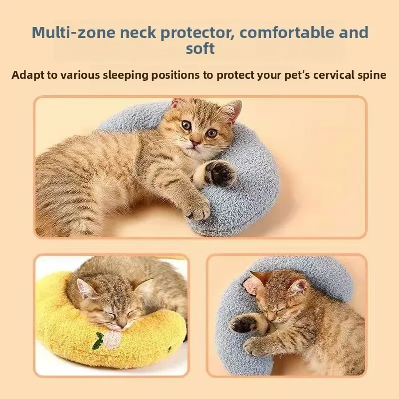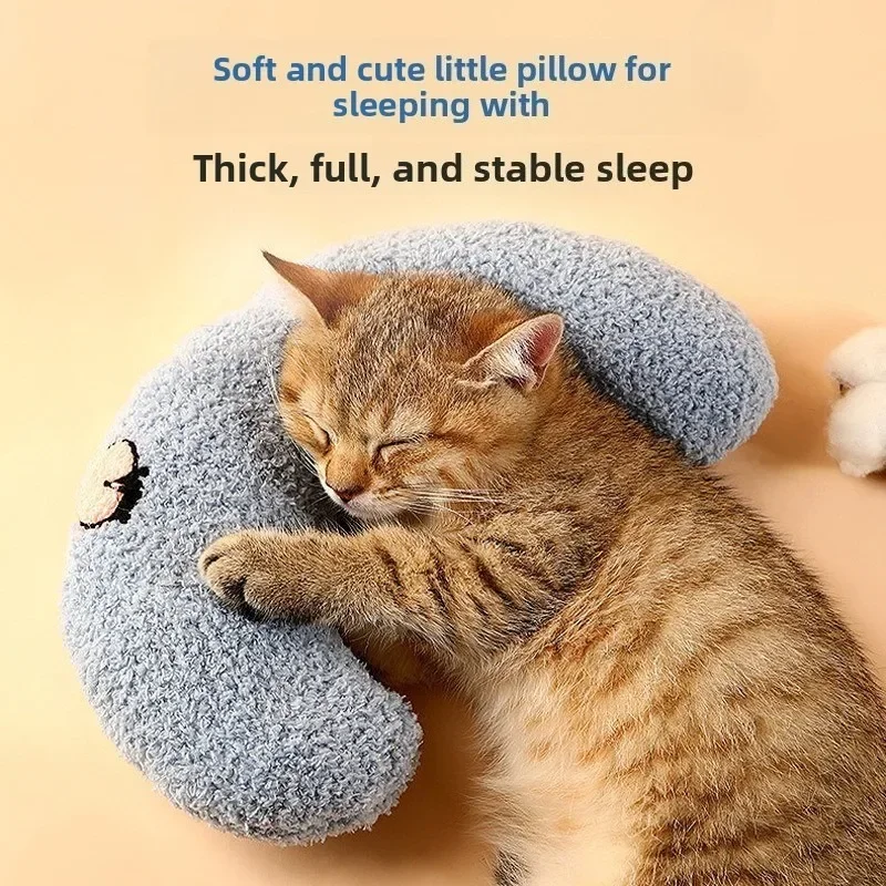Pet Pillow for Cats and Dogs Soft Plush Thick Filling Cervical Support Hypoallergenic Washable Cover Deep Sleep U-Shaped Cat And